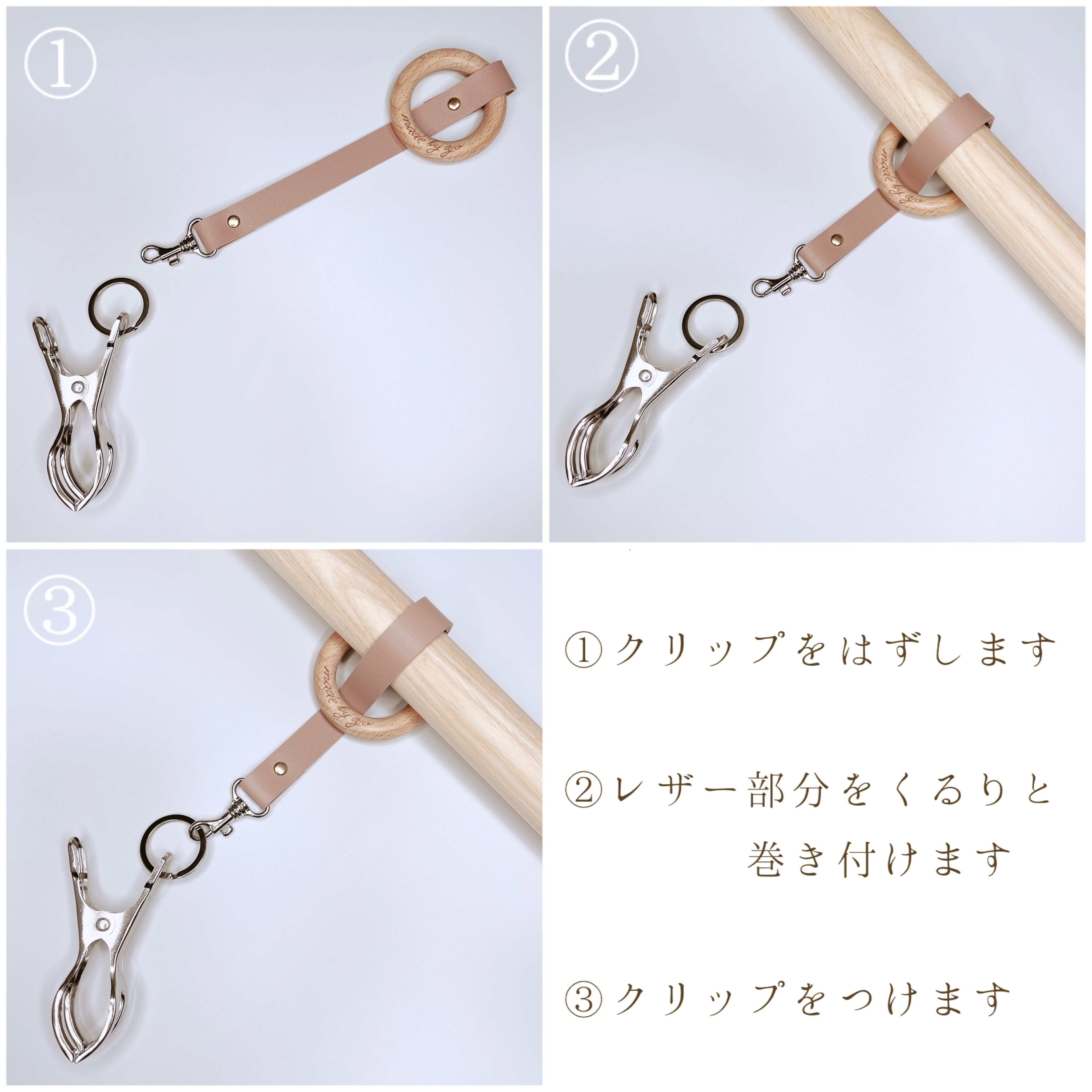 【国産 ヌメ革】ウッドリング シューズクリップ ナチュラルカラー