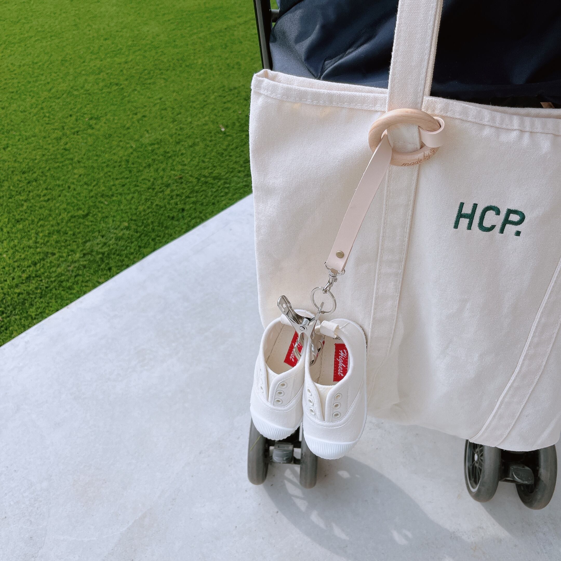 ②バッグの紐やベビーカーの